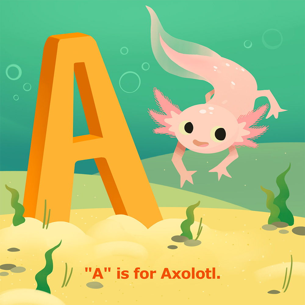 The first page of my conceptual children's book, Alphabet of Bizarre Creatures.