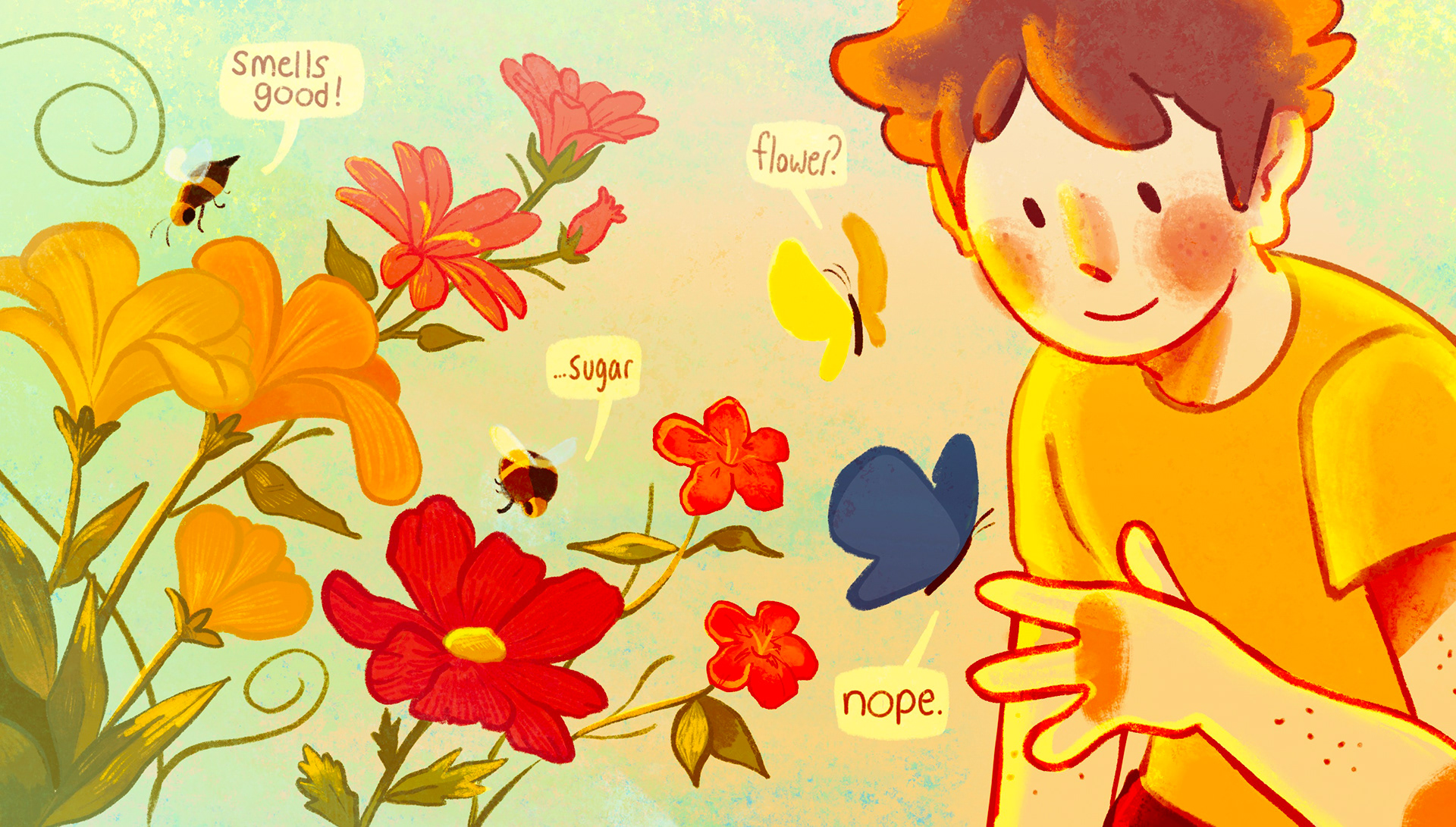 Two double-page spreads for a children's book titled "Bug Brain".