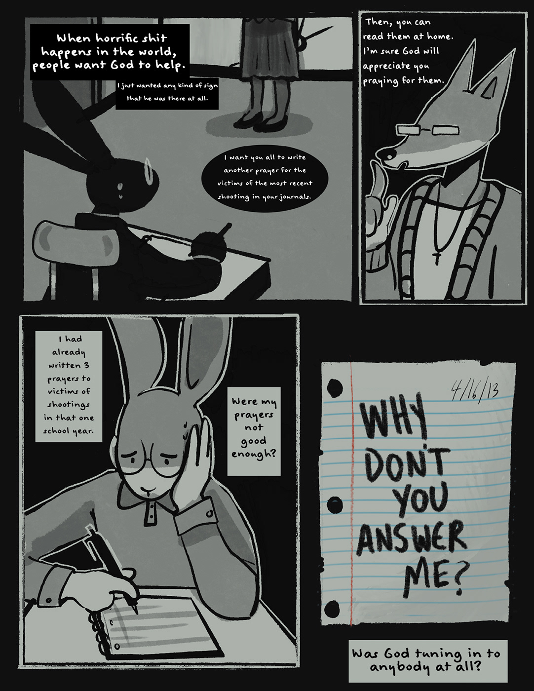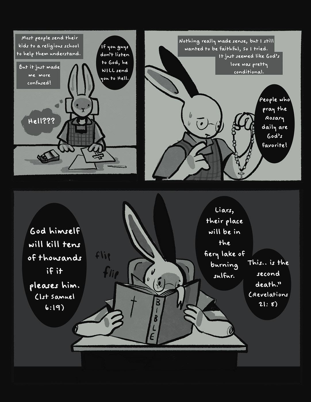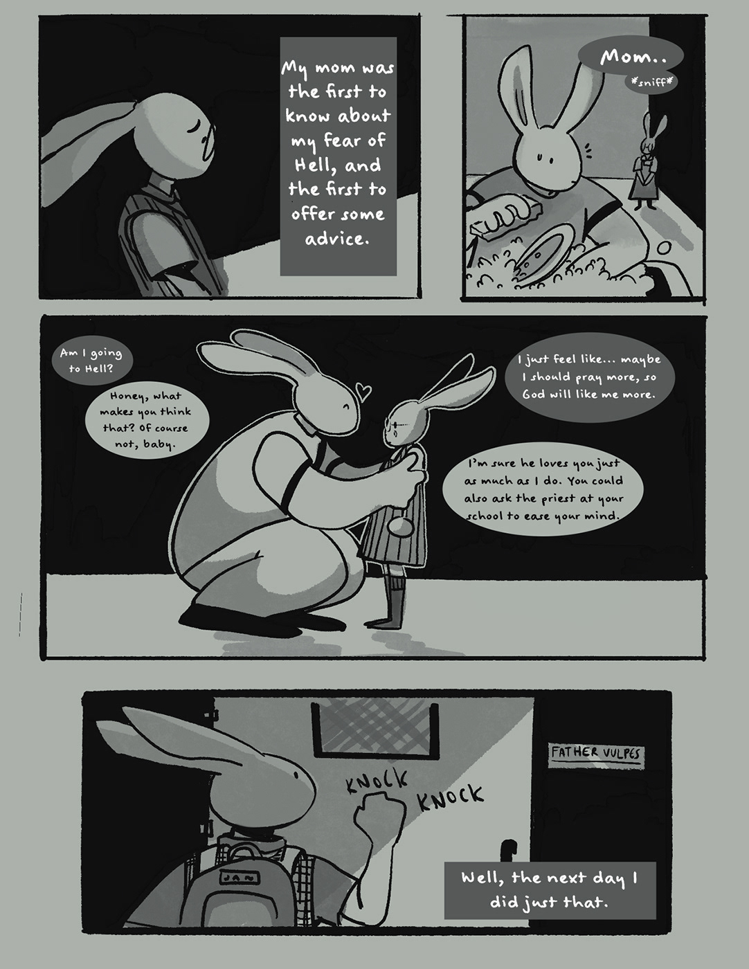 A short graphic memoir about going to a Catholic school, and developing anxiety.